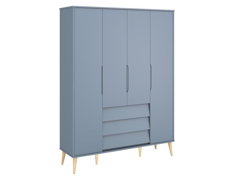 Roupeiro Noah Retrô Azul com pés em madeira natural - Reller