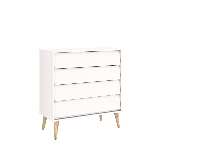 Cômoda Gaveteira Noah Retrô Branco Fosco com pés em madeira natural - Reller