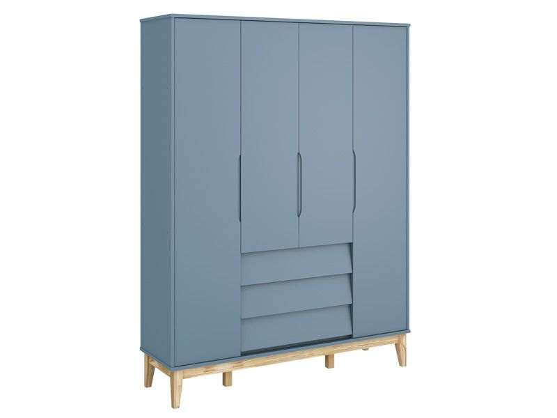Roupeiro Noah Classic Azul com pés em madeira natural - Reller