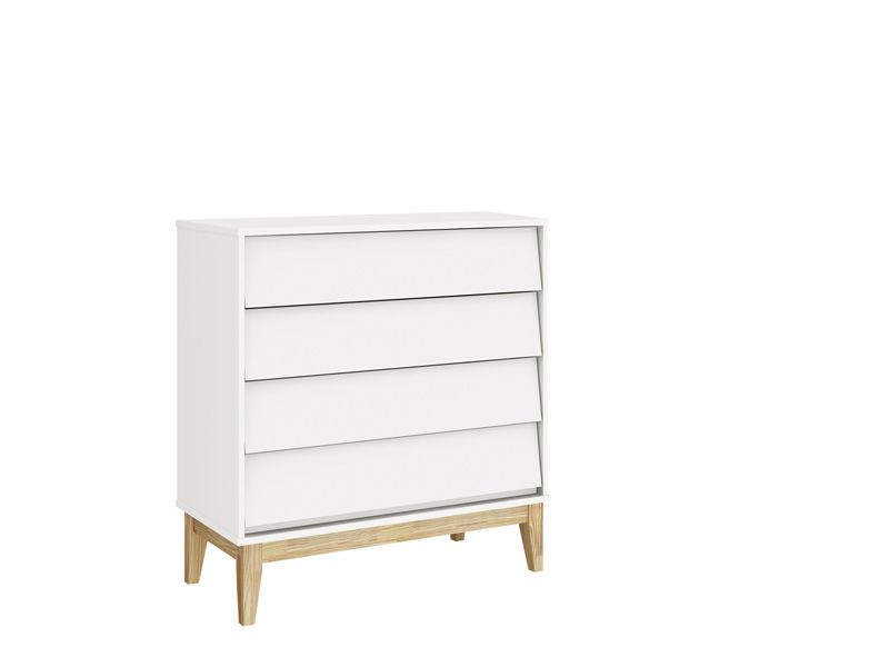 Cômoda Gaveteira Noah Classic Branco Fosco com pés em madeira natural - Reller