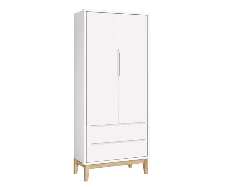 Roupeiro Classic 02 portas Branco Fosco com pés em madeira natural - Reller
