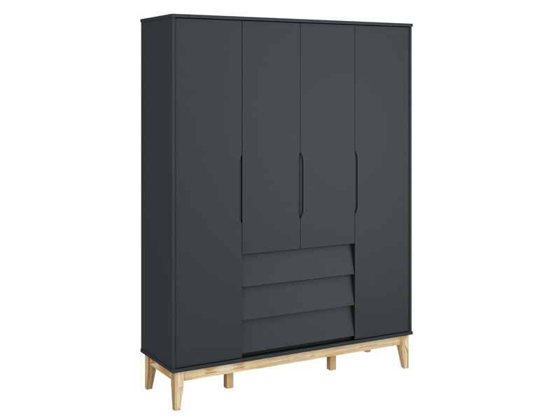 Roupeiro Noah Classic Grafite com pés em madeira natural - Reller