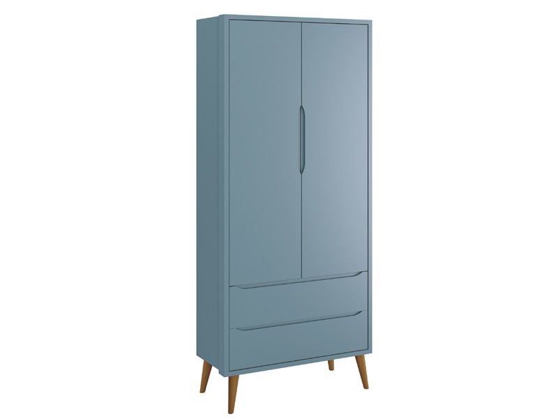 Roupeiro Théo 02 portas Azul com pés em madeira - Reller