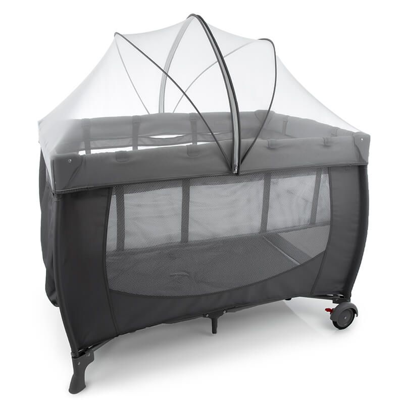 O berço portátil completo: 2 opções de altura, mosquiteiro arcado com zíper, trocador, rodas e abertura lateral para usar por mais tempo, como se fosse uma “toquinha”.