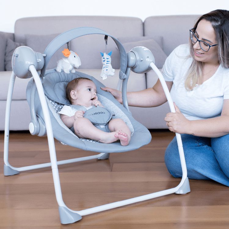 sistema com melodia em 4 níveis de volume. 5 velocidades de balanço. 3 ajustes de timer. arco de brinquedos articulável e removível. fechamento fácil e compacto para guardar. 2 posições de reclinação para o conforto do bebê. cinto de segurança de 5 pontos com ajuste. operado com 4 pilhas AA (não inclusas) ou ligado a uma fonte de energia. limite de peso: 9 kg.