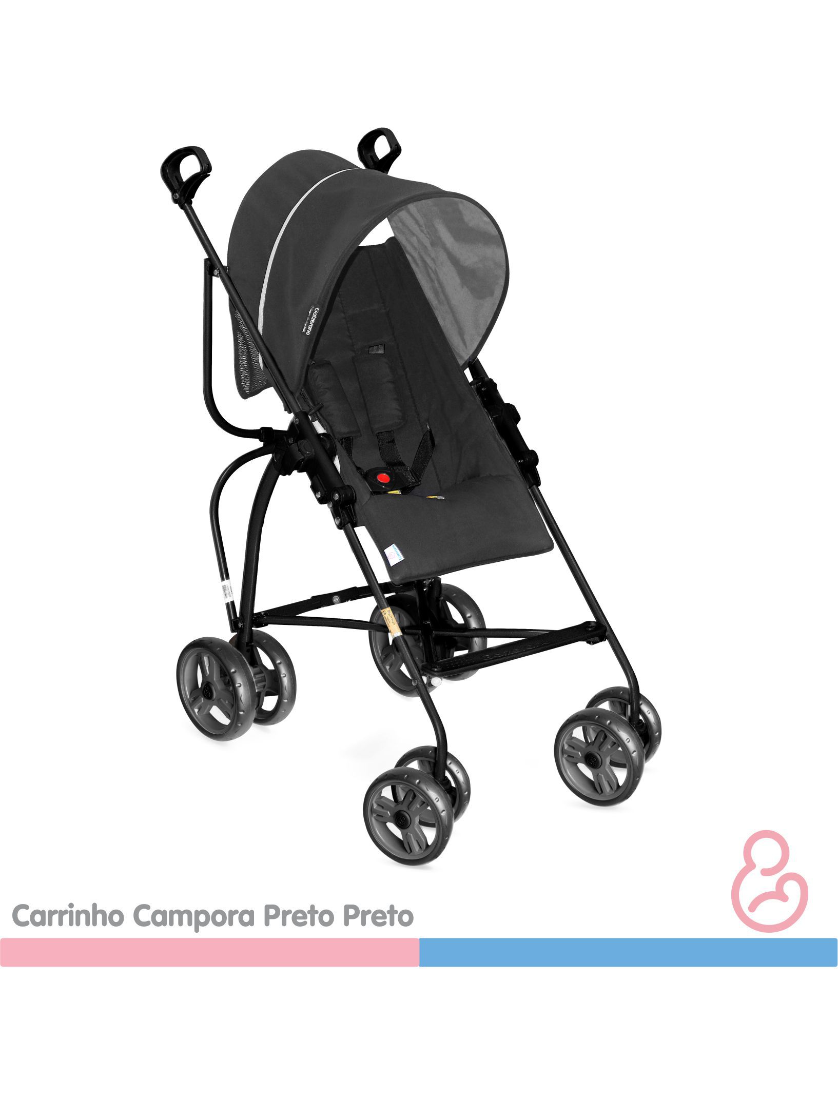 Carro passeio destinado para crianças a partir de 6 meses; Assento Reversível e Reclinável; Capota dupla face; Cinto de segurança de 5 pontos; Protetor de ombro; Tecido removível e lavável; Alça para facilitar o transporte; Rodas traseiras com freio individual; Fechamento guarda chuva; Garantia de 1 ano; Produto Certificado NBR 14389; Registro do produto no INMETRO – Nº 006669/2016. Medidas Alt. 96cm Larg. 53cm Comp. 85cm Peso. 6,600kg |