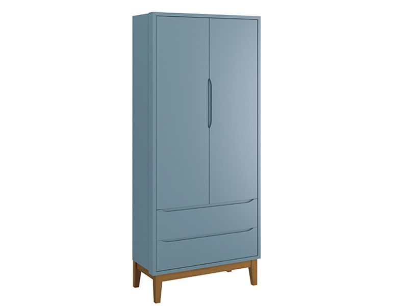 Roupeiro Classic 02 portas Azul com pés em madeira - Reller