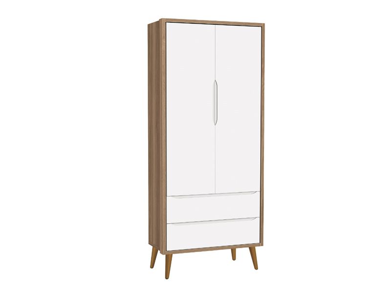 Roupeiro Théo 02 portas Branco Fosco com Mezzo com pés em madeira - Reller