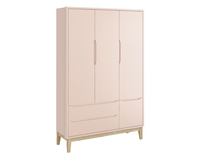 Roupeiro Classic 03 Portas Rosa com pés em madeira natural - Reller