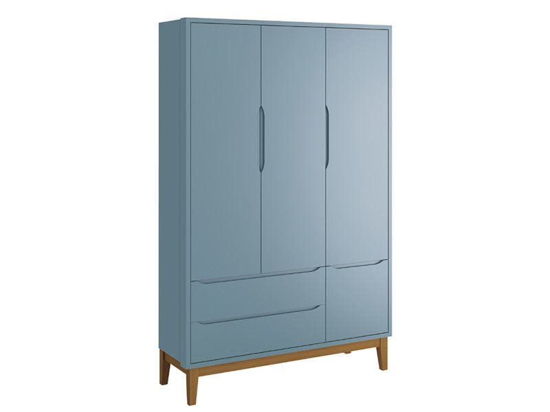 Roupeiro Classic 03 Portas Azul com pés em madeira - Reller