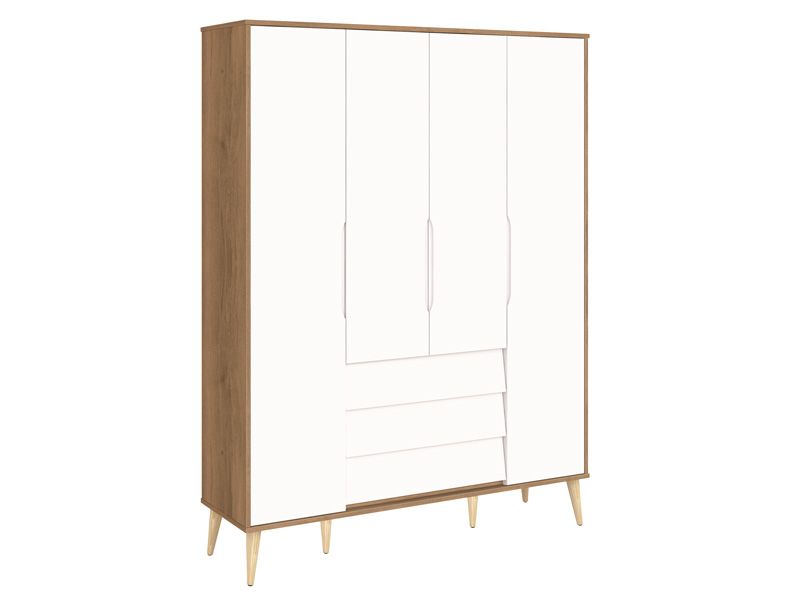 Roupeiro Noah Retrô Branco Fosco com Mezzo com pés em madeira natural - Reller