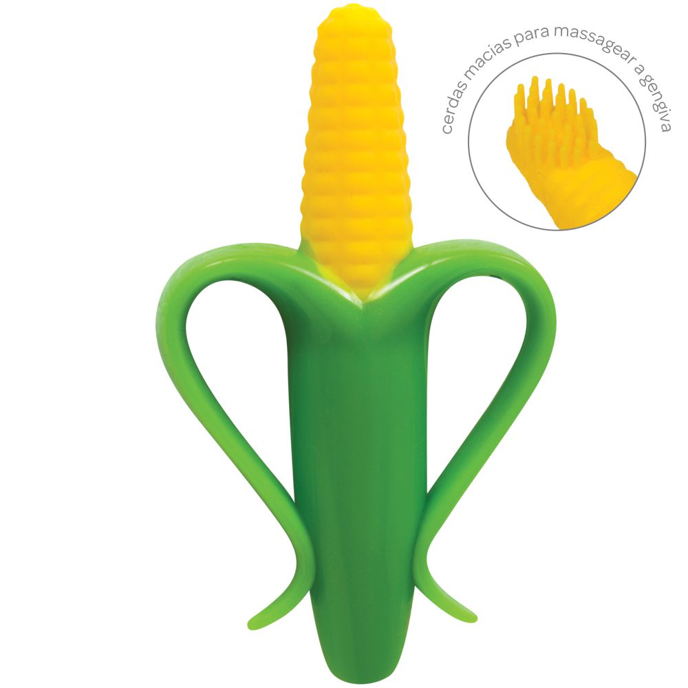 Com desgin divertido e produziado em silicone, o Massageador de Gengivava milho é ideal para aliviar o desconforto causado pelo nascimento dos primeiros dentinhos do bebê. As cerdas macias são perfeitas para massagear e estimular as gengivas do pequeno.