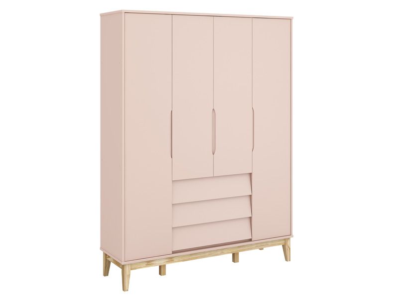 Roupeiro Noah Classic Rosa com pés em madeira natural - Reller
