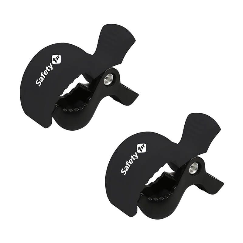 Kit com duas presilhas multiuso. Pequenas, leves e tem fixação firme. Prenda fraldas e mantas na capota do carrinho com facilidade, seja para proteger do sol, vento ou garoa.