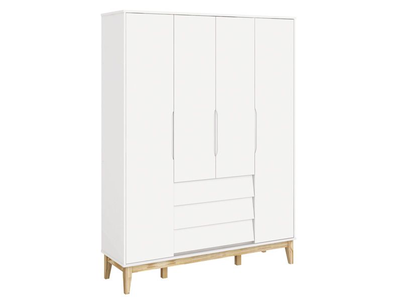Roupeiro Noah Classic Branco Fosco com pés em madeira natural - Reller