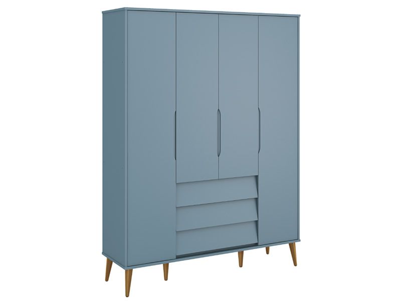 Roupeiro Noah Retrô Azul com pés em madeira - Reller
