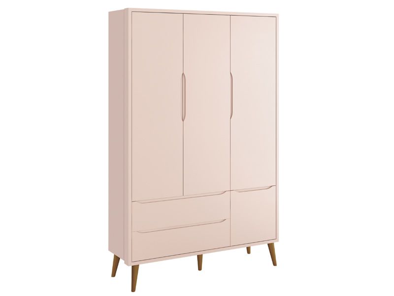 Roupeiro Théo 03 Portas Rosa com pés em madeira - Reller